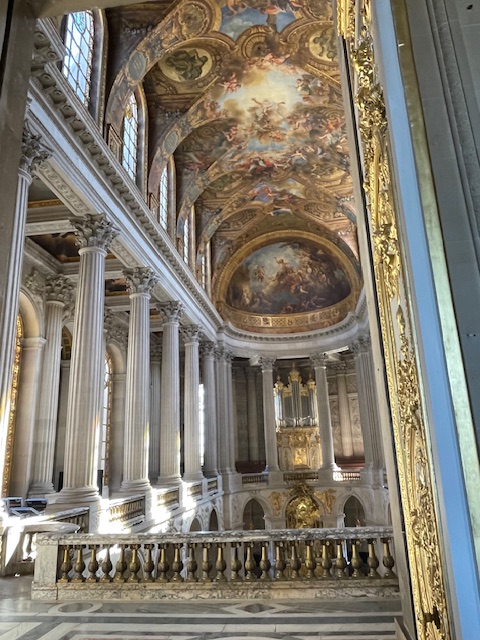 Upon arrival at Versailles, the Entrance to the Chateau is very ornate with stone sculptures and gilded wrought iron gates. We visited Versailles years ago, in September, and it was a lovely time to visit. We purchased the audio guide along with our tickets and found it very informative. There are many rooms and levels to get through and it’s probably an ambitious undertaking to do in one day. After the visit, however, we received a thank you email from the Palace of Versailles with links to more resources about Versailles, which was very nice, since it only enhanced our visit.