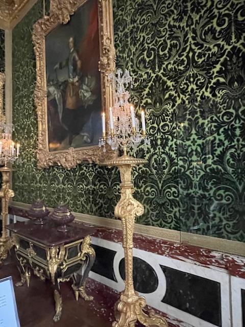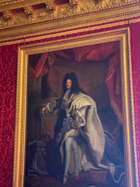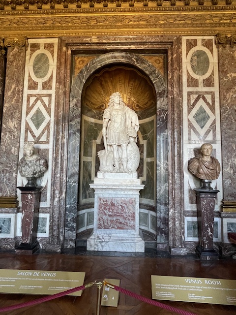 When walking through the palace, you will learn about the many Kings of France, including Louis XIV. Louis XIV, also known as the Sun King, was born to Louis XIII and Anne of Austria in 1638. In 1643, at the very young age of five, Louis XIV became the King of France. In the portrait below by Hyacinthe Riguad, Louis XIV is wearing his coronation robes. Louis XIV spent much of his life at Versailles, expanded it greatly, and died there in 1715. Also, pictured below is a statue of Louis XIV in the Venus room.